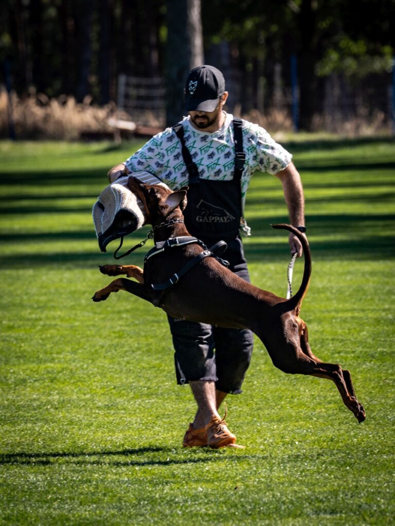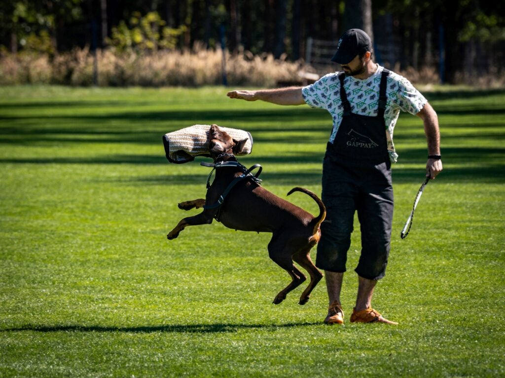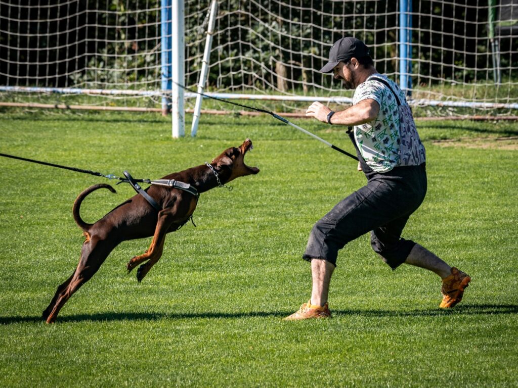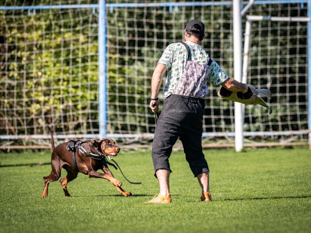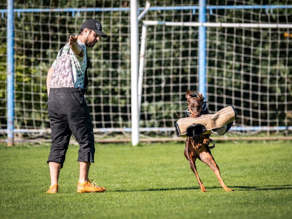 Lexy na obranách hlavně řádí a zlobí figuranta, tedy spíš se zlobí navzájem. Lexy se učí stopovat na hlíně, jde jí to moc pěkně.