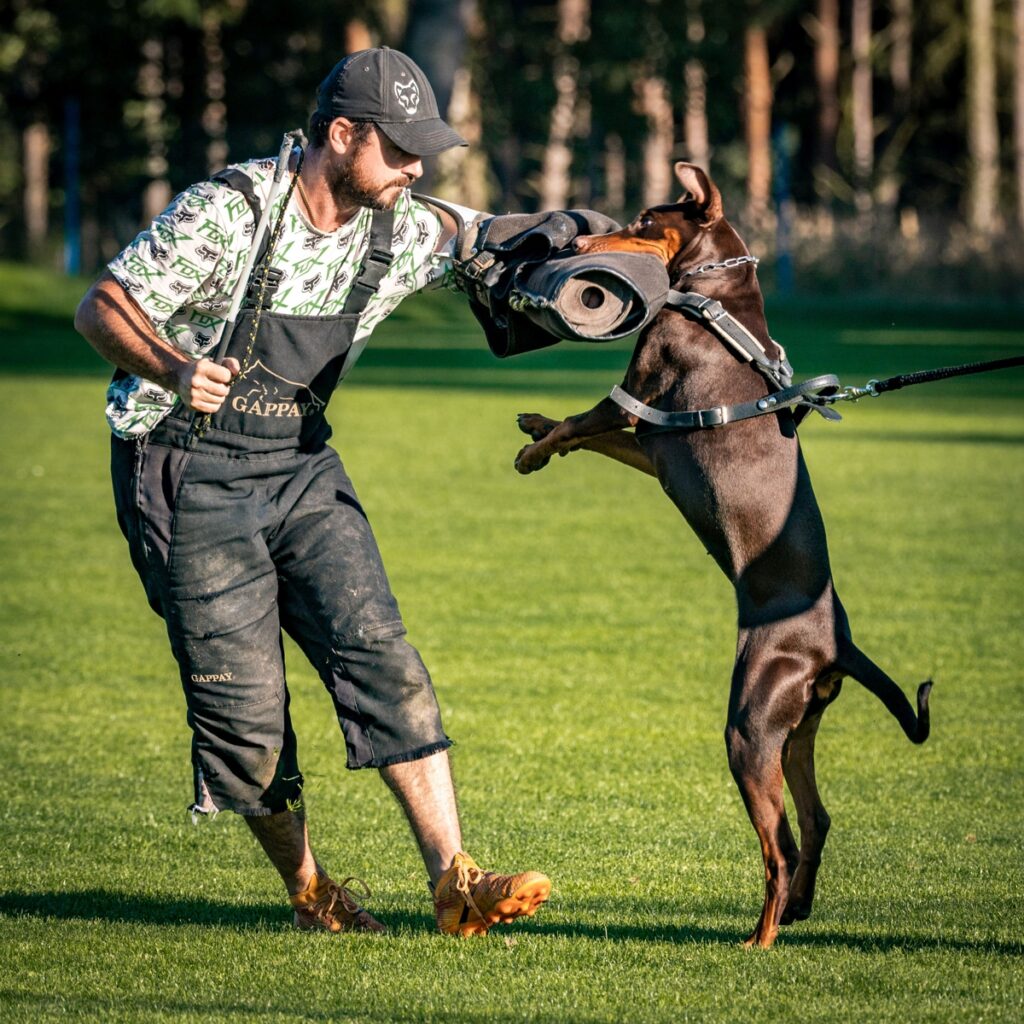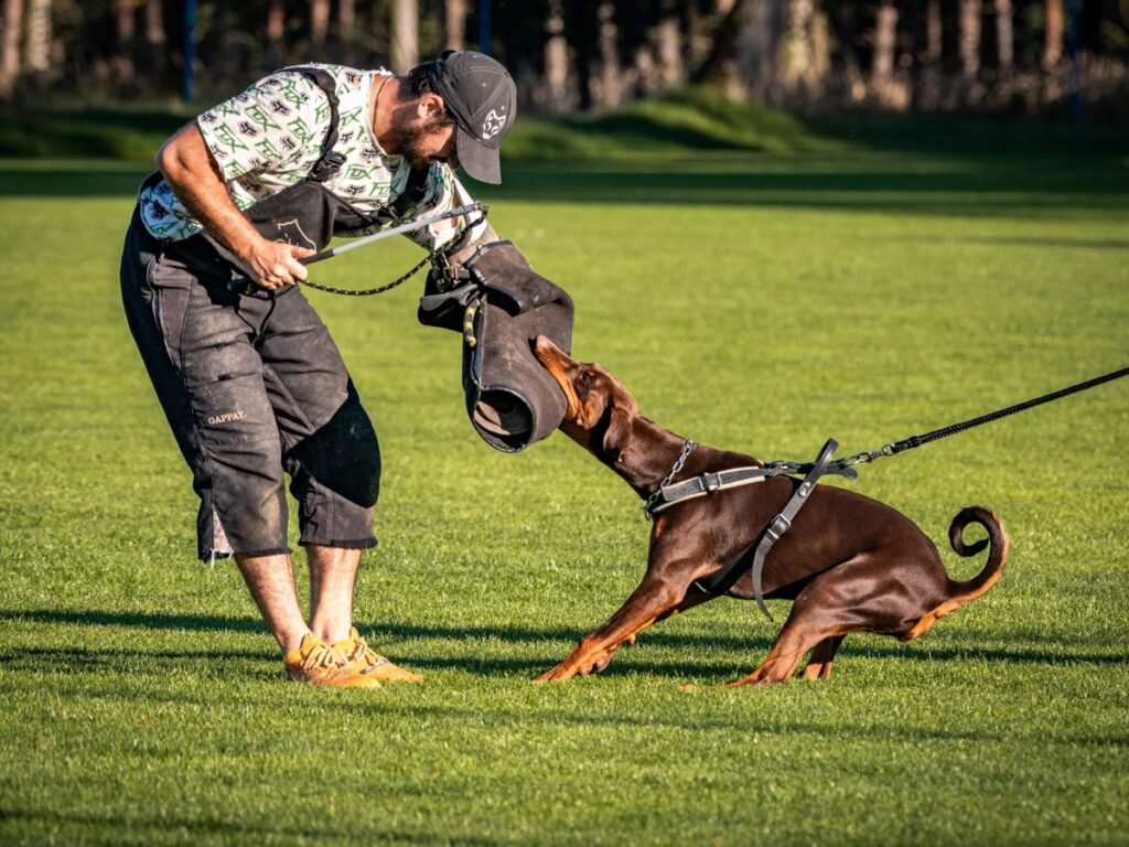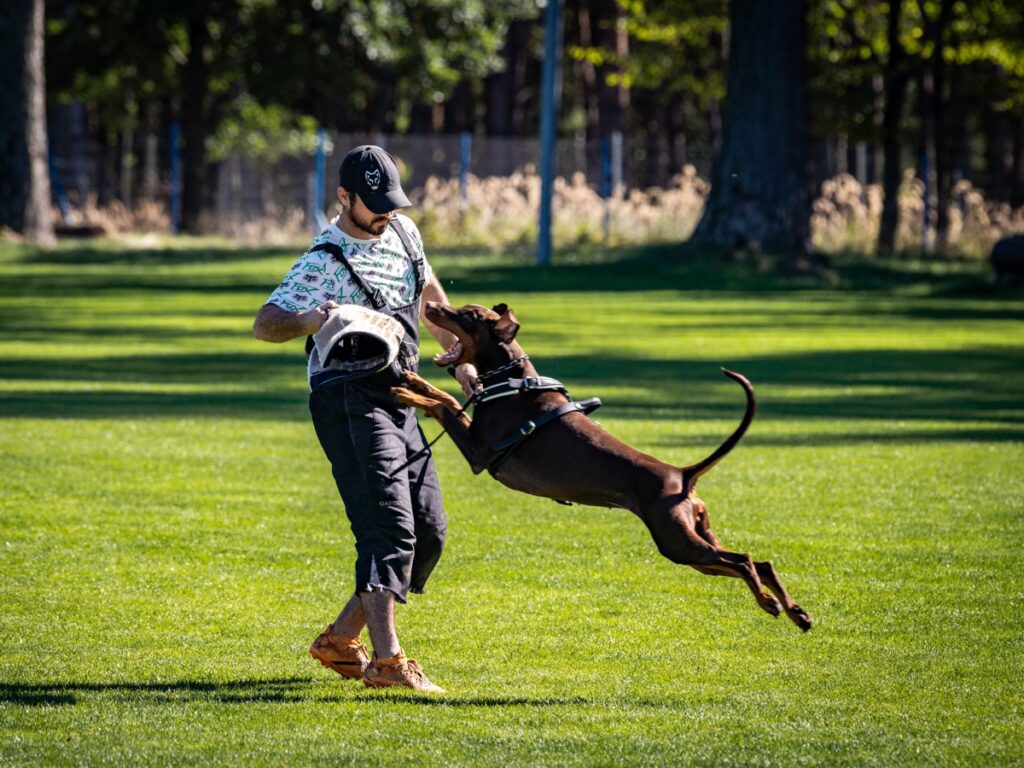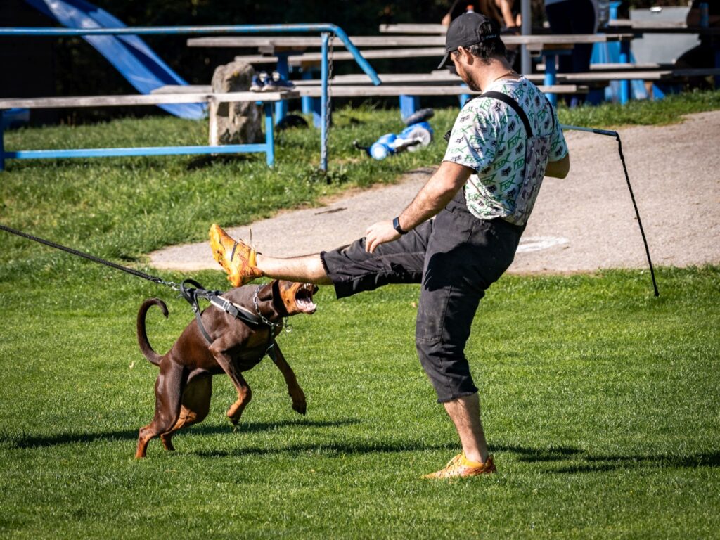 Lexy na obranách hlavně řádí a zlobí figuranta, tedy spíš se zlobí navzájem. Lexy se učí stopovat na hlíně, jde jí to moc pěkně.